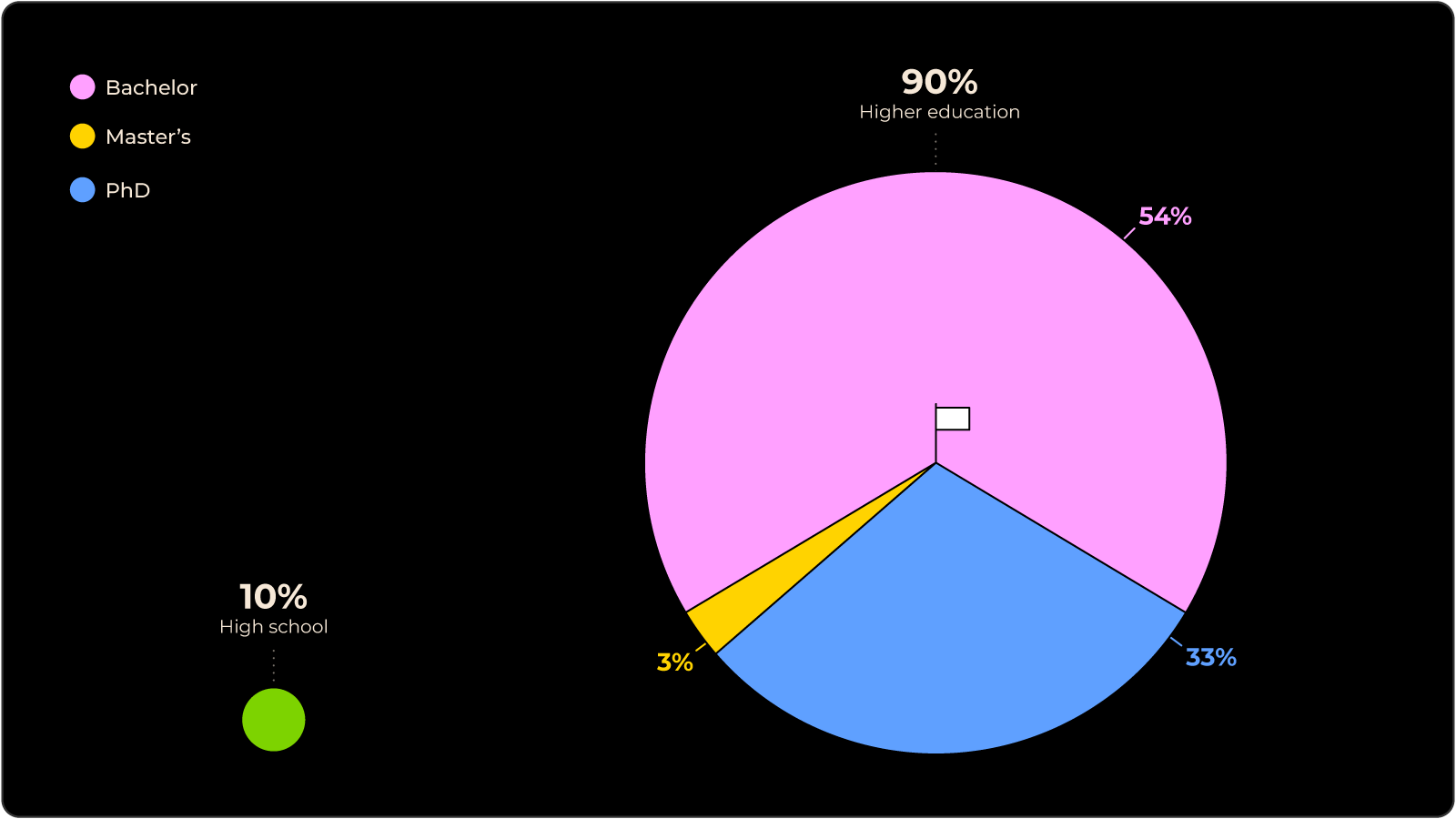✦ Nomads are highly-skilled: around 90% of nomads hold university degrees, and they typically work in the knowledge economy or creative industries with jobs such as software development, marketing, and content creation.