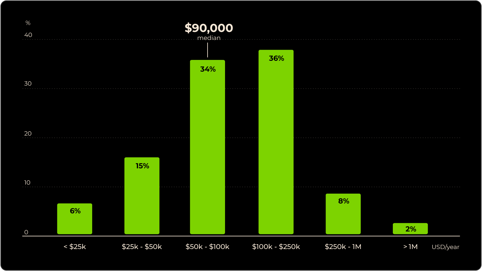 ✦ Nomads are highly-paid: the median income for nomads is $90,000, putting them in the top 1% of income-earners internationally.